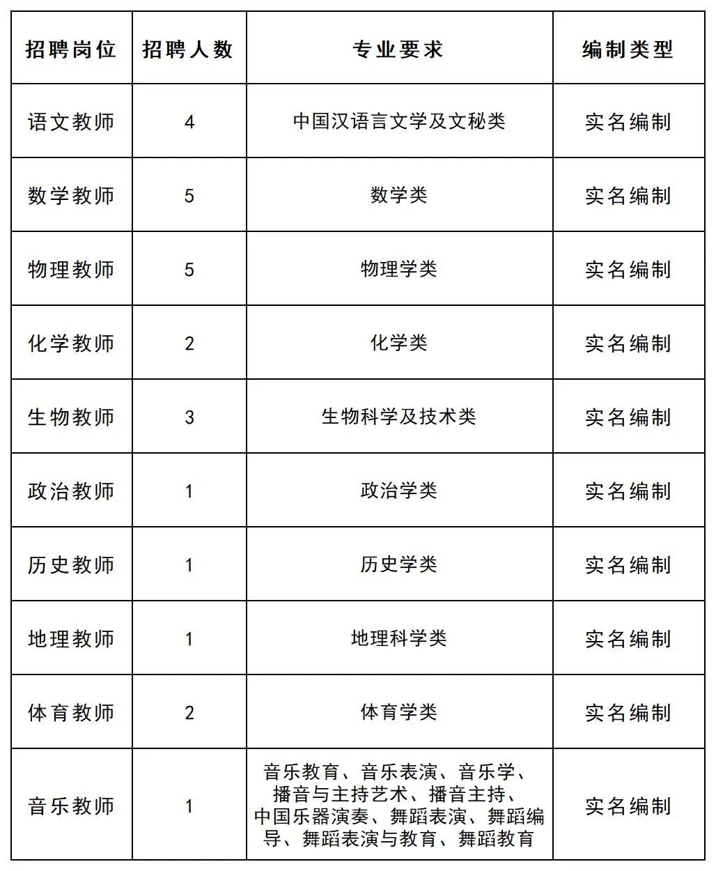 普通高校專業(yè)對(duì)口年齡35周歲以下具有相應(yīng)教師資格證的碩士研究生。