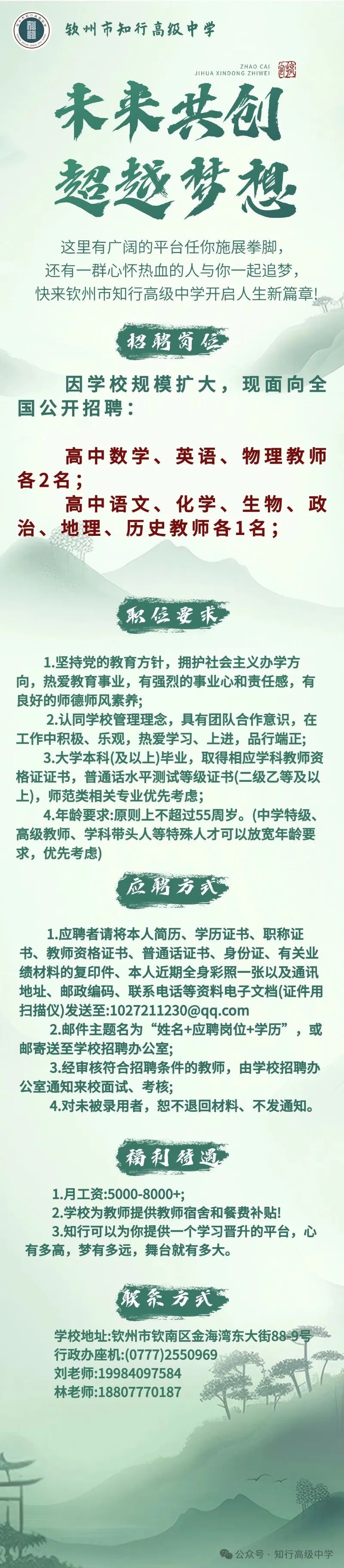 欽州市知行高級(jí)中學(xué)招聘公告