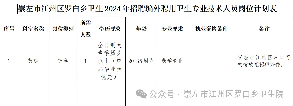 根據(jù)工作需要,結(jié)合我院實際情況,江州區(qū)羅白鄉(xiāng)衛(wèi)生院面向社會招聘工作人員。