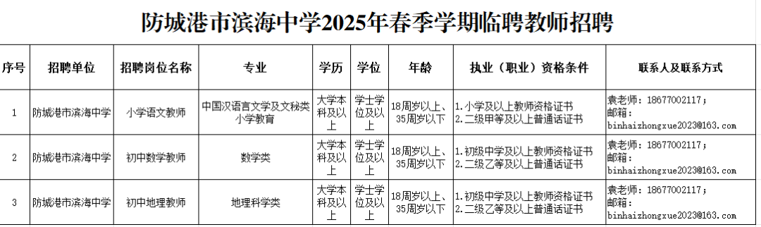 2025年防城港市濱海中學(xué)春季學(xué)期臨聘教師招聘公告