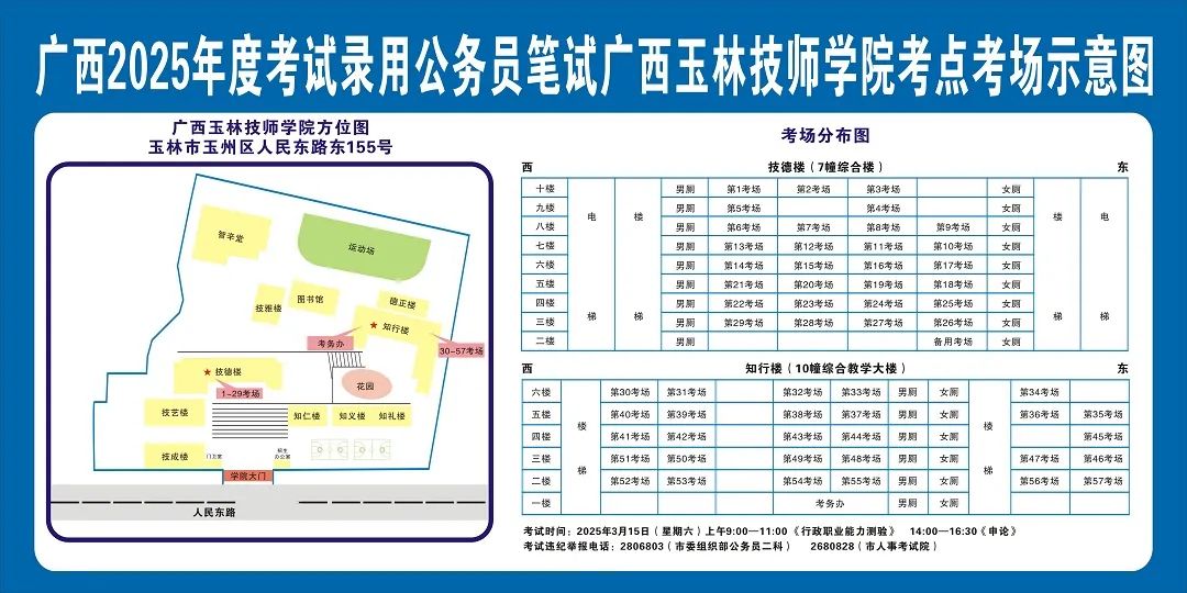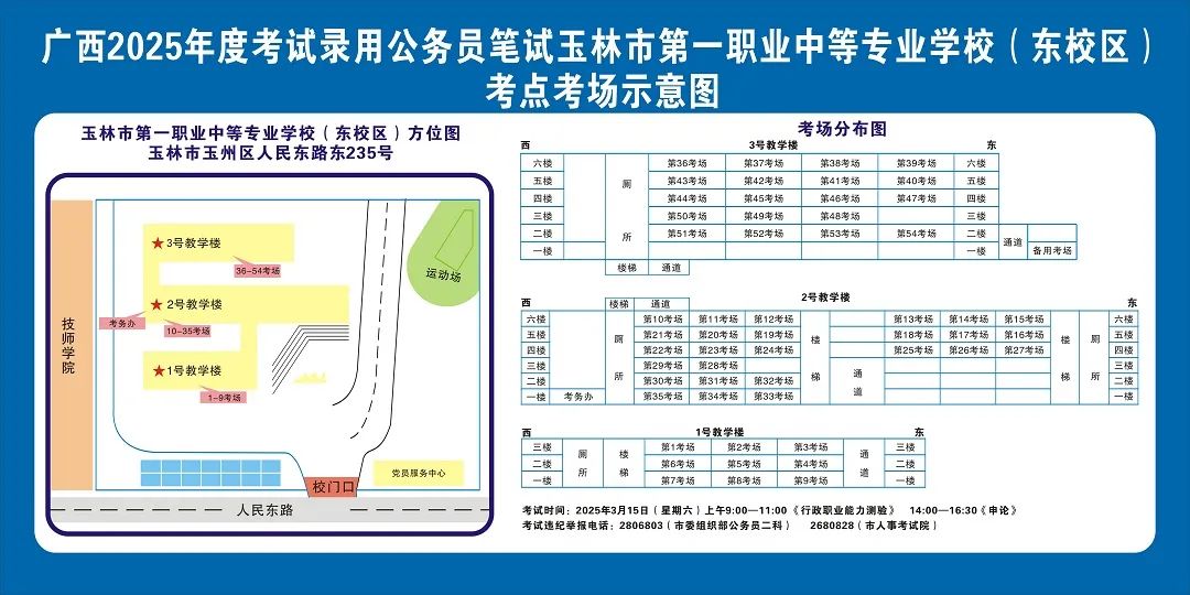 除考試當(dāng)天考生可以進(jìn)入考點(diǎn)外,考生不得提前進(jìn)入考點(diǎn)查看考場(chǎng)(學(xué)校將在大門處擺放考場(chǎng)分布示意圖),玉林考區(qū)11個(gè)考點(diǎn)的考場(chǎng)布置情況如下: