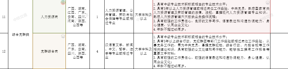 綜合黨群類:人力資源崗;黨群綜合崗