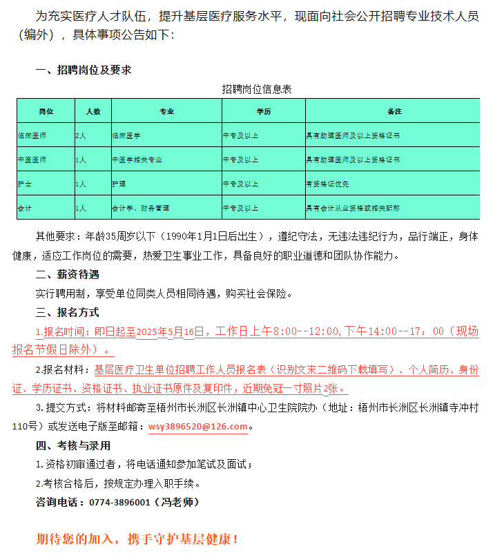 原文標題:2025年梧州市長洲區(qū)長洲鎮(zhèn)中心衛(wèi)生院公開招聘公告