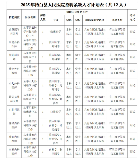 2025年博白縣人民醫(yī)院公開招聘緊缺人才12人