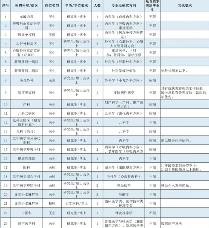 博士崗位:全年長期招聘(我院將根據(jù)報名情況分批次安排面試,具體以醫(yī)院通知為準),崗位招滿即關閉報名通道。