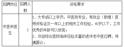 我院因業(yè)務(wù)發(fā)展需要,決定面向社會(huì)公開(kāi)招聘中醫(yī)科醫(yī)生2人,現(xiàn)將有關(guān)事項(xiàng)公告如下: