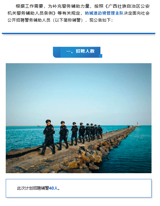 防城港邊境管理支隊公開招聘警務(wù)輔助人員40人