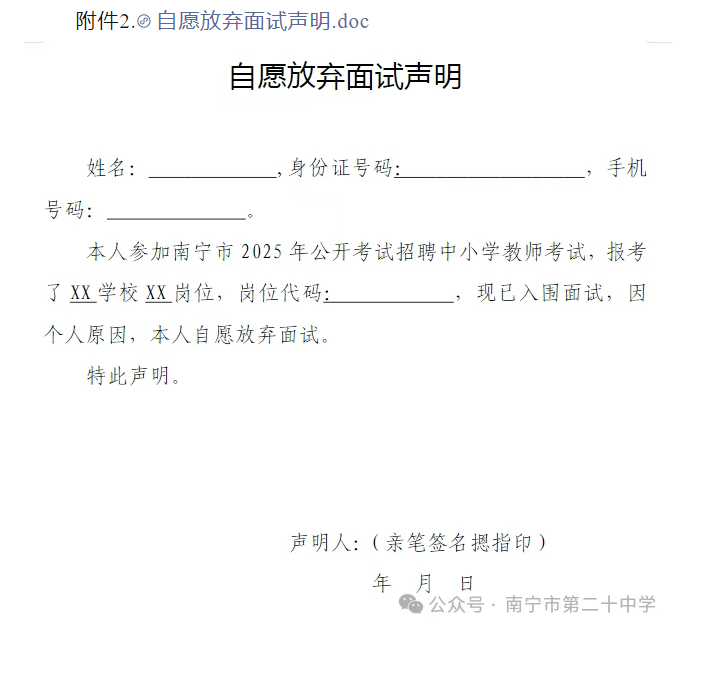 原文標題:南寧市第二十中學2025年公開考試招聘中小學教師面試入圍人選資格審查通知