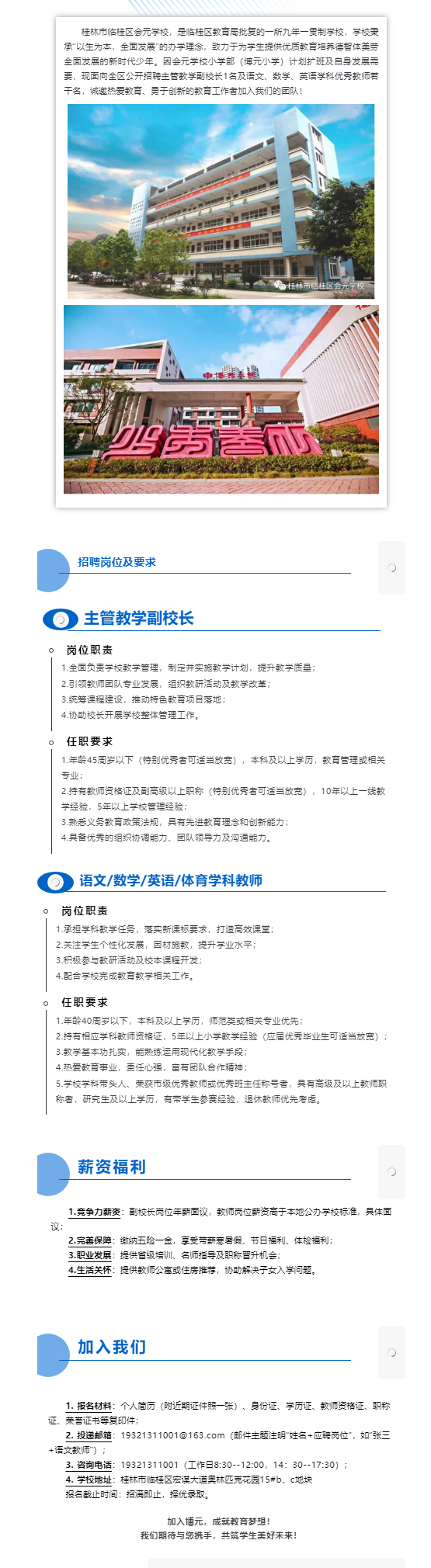 桂林市臨桂區(qū)會(huì)元學(xué)校小學(xué)部(博元小學(xué))2025年教師招聘公告?