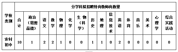 德??h2025年計(jì)劃招聘初中特崗教師10名,具體科目計(jì)劃招聘人數(shù)詳見(jiàn)下表: