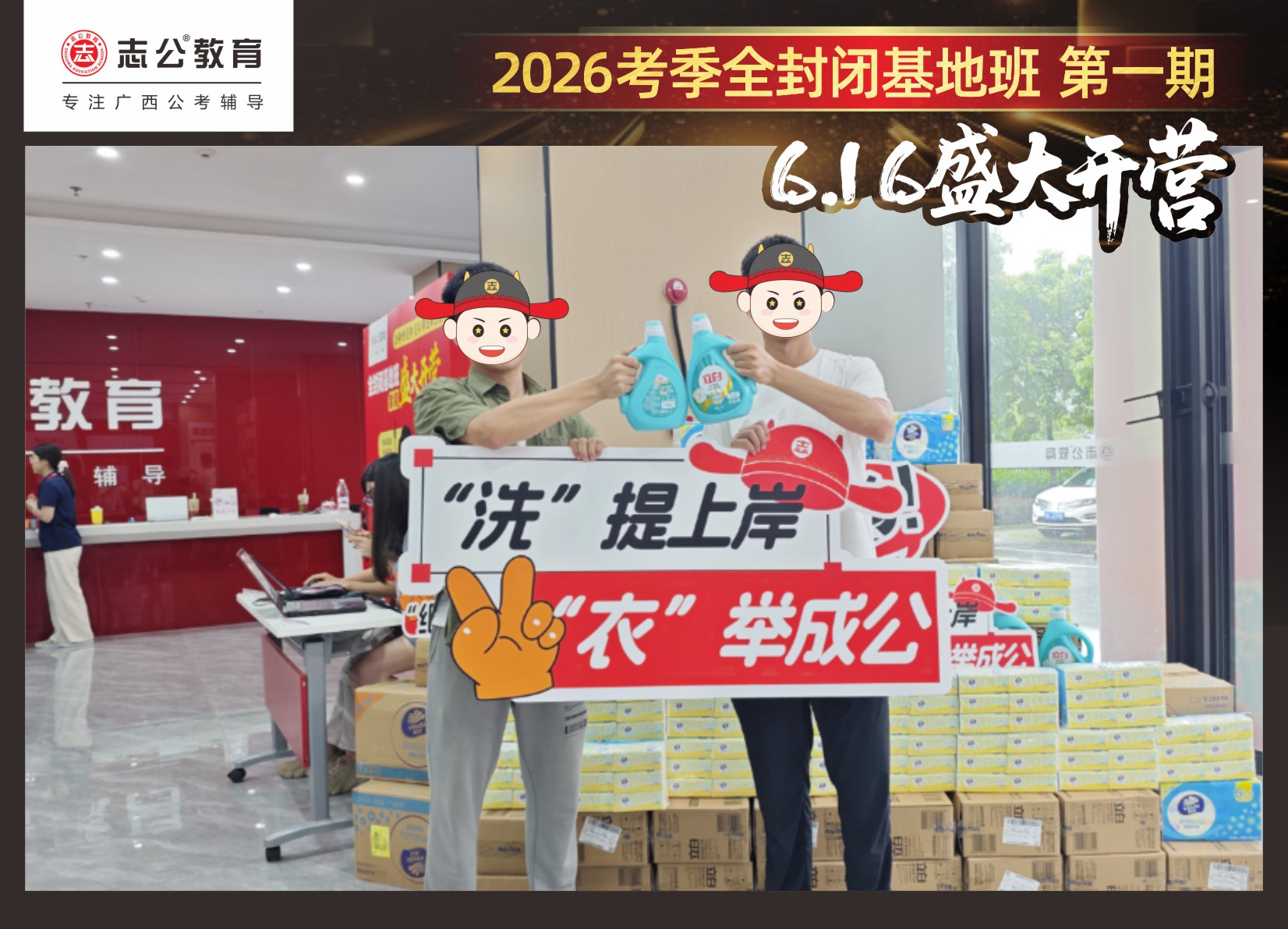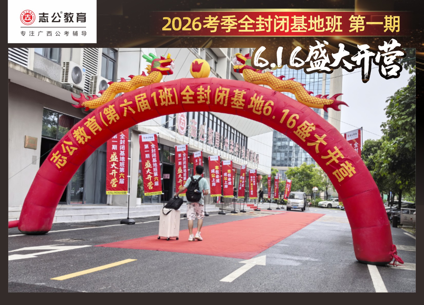 6月16日,志公教育基地班在萬眾翹首以盼中,正式拉開帷幕!來自各地的學(xué)員們,懷揣著夢想與憧憬匯聚于此,以“躍龍門”的非凡勇氣和“走紅毯”般的自信姿態(tài),鄭重地書寫下屬于自己的“上岸心愿”。在這場充滿儀式感與溫馨氛圍的啟程儀式中,開啟了新篇章。