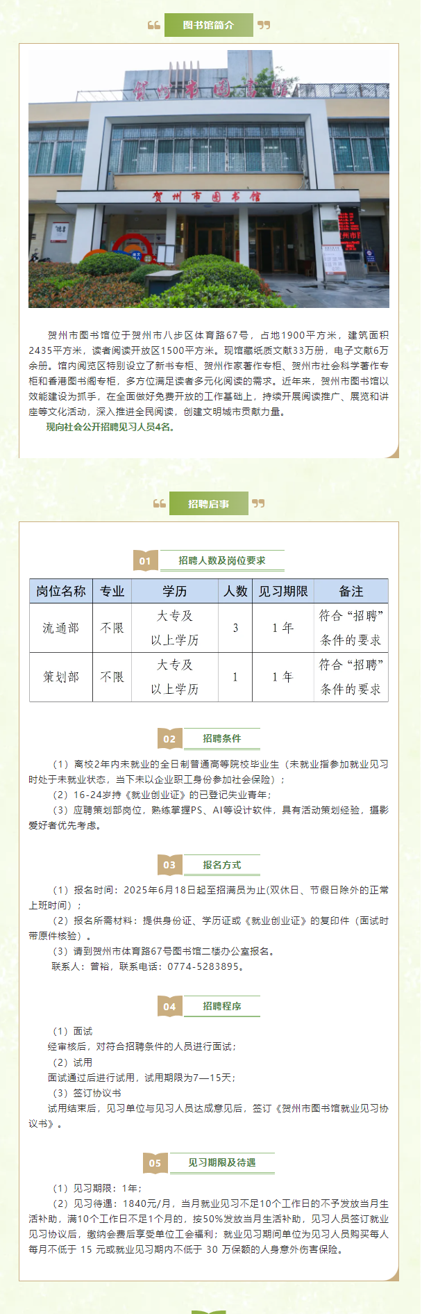 2025年賀州市圖書館招聘見(jiàn)習(xí)人員4人