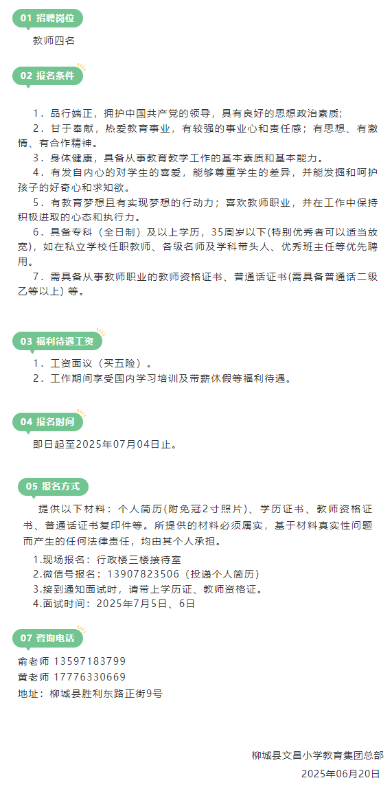 2025年柳城縣文昌小學(xué)教育集團總部教師招聘公告
