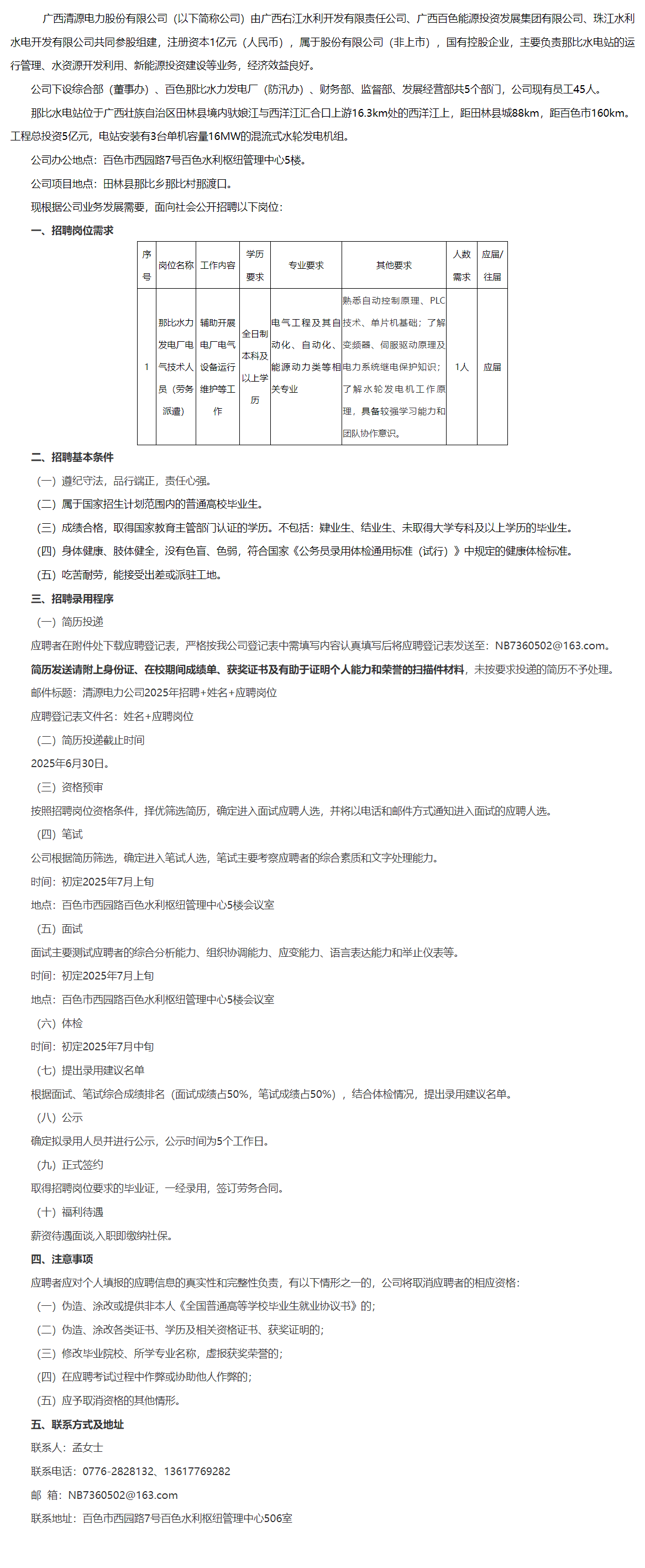 原文標(biāo)題:廣西清源電力股份有限公司2025年勞務(wù)派遣人員招聘公告