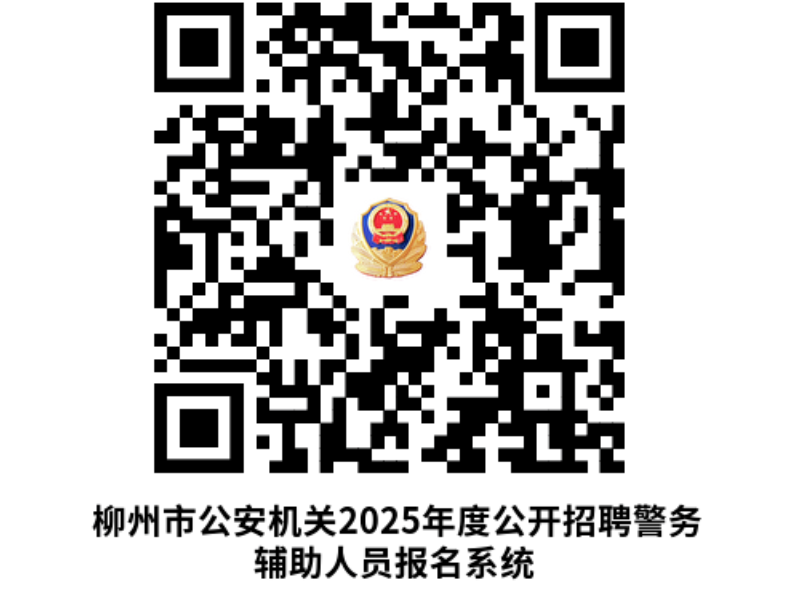 報(bào)名方式:通過掃描二維碼進(jìn)入報(bào)名網(wǎng)站報(bào)考,考生也可登錄柳州市人力資源和社會(huì)保障局網(wǎng)站(http://rsj.liuzhou.gov.cn)或進(jìn)入“柳州人社”微信公眾號(hào)、“柳州警方”微信公眾號(hào)關(guān)注相關(guān)招聘信息進(jìn)行報(bào)考,每人限報(bào)一個(gè)職位。