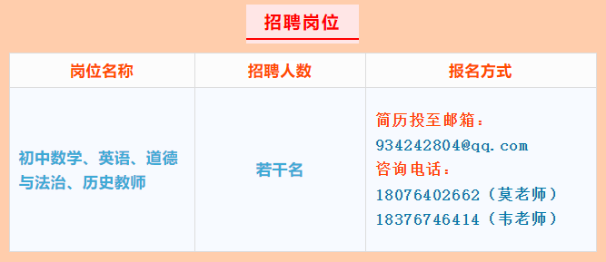 報(bào)名實(shí)行網(wǎng)絡(luò)形式,有意者請將簡歷投至學(xué)校郵箱934242804@qq.com。具體面試時(shí)間電話通知。