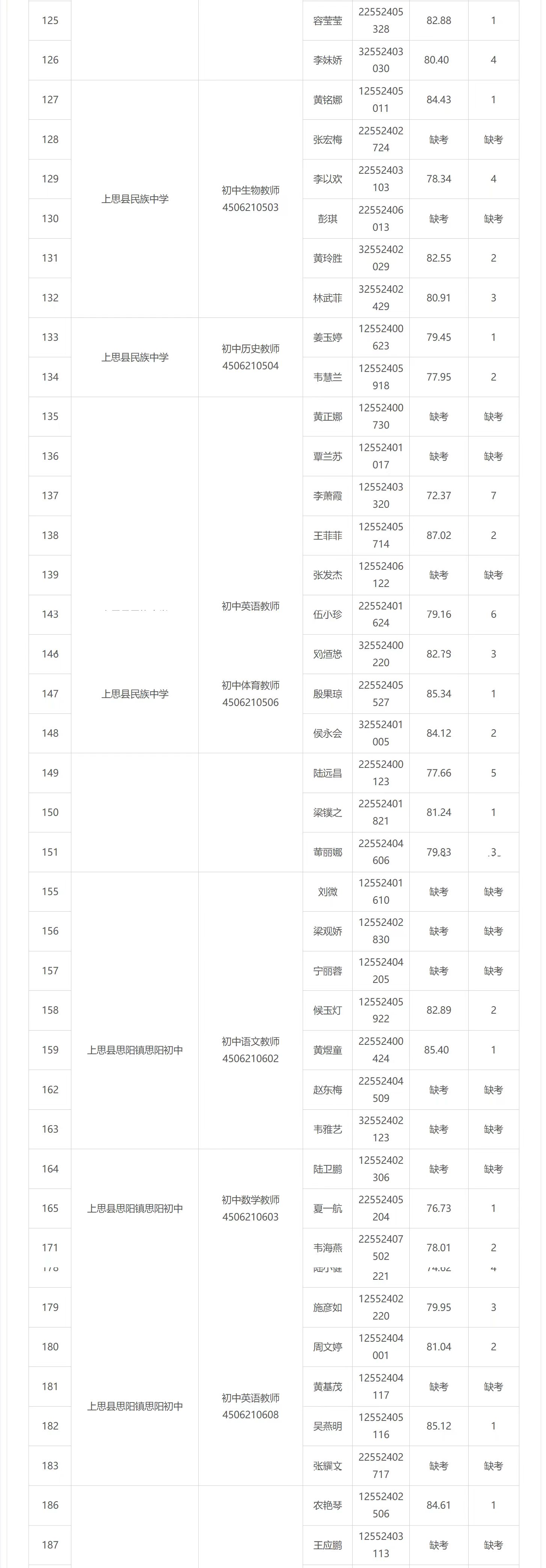 2025年防城港市中小學(xué)教師公開招聘面試成績公布