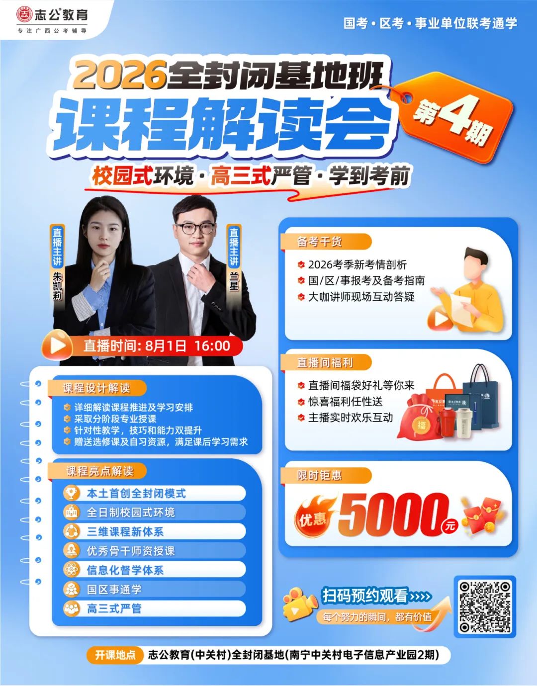 本次解讀會(huì)邀請到了朱凱莉、蘭星等資深講師。他們長期深耕公考領(lǐng)域,對廣西的公考形勢了如指掌。在解讀會(huì)上,講師們將為大家深度剖析2026考季的新考情、分享報(bào)考及備考指南,與同學(xué)們進(jìn)行現(xiàn)場互動(dòng),更重要的是進(jìn)行2026年全封閉基地班第4期課程設(shè)計(jì)解讀!讓你在備考之初就搶占先機(jī)。????