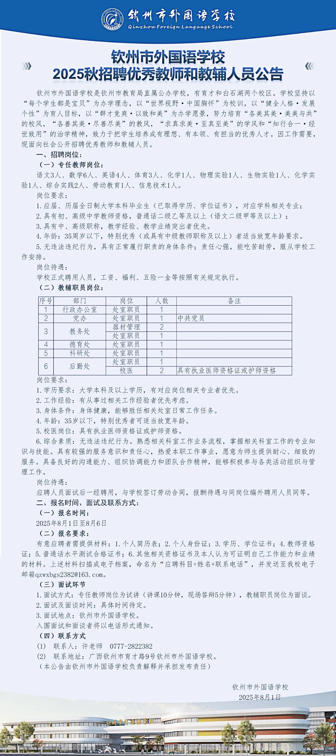 2025年欽州市外國(guó)語(yǔ)學(xué)校秋招聘優(yōu)秀教師和教輔人員若干人
