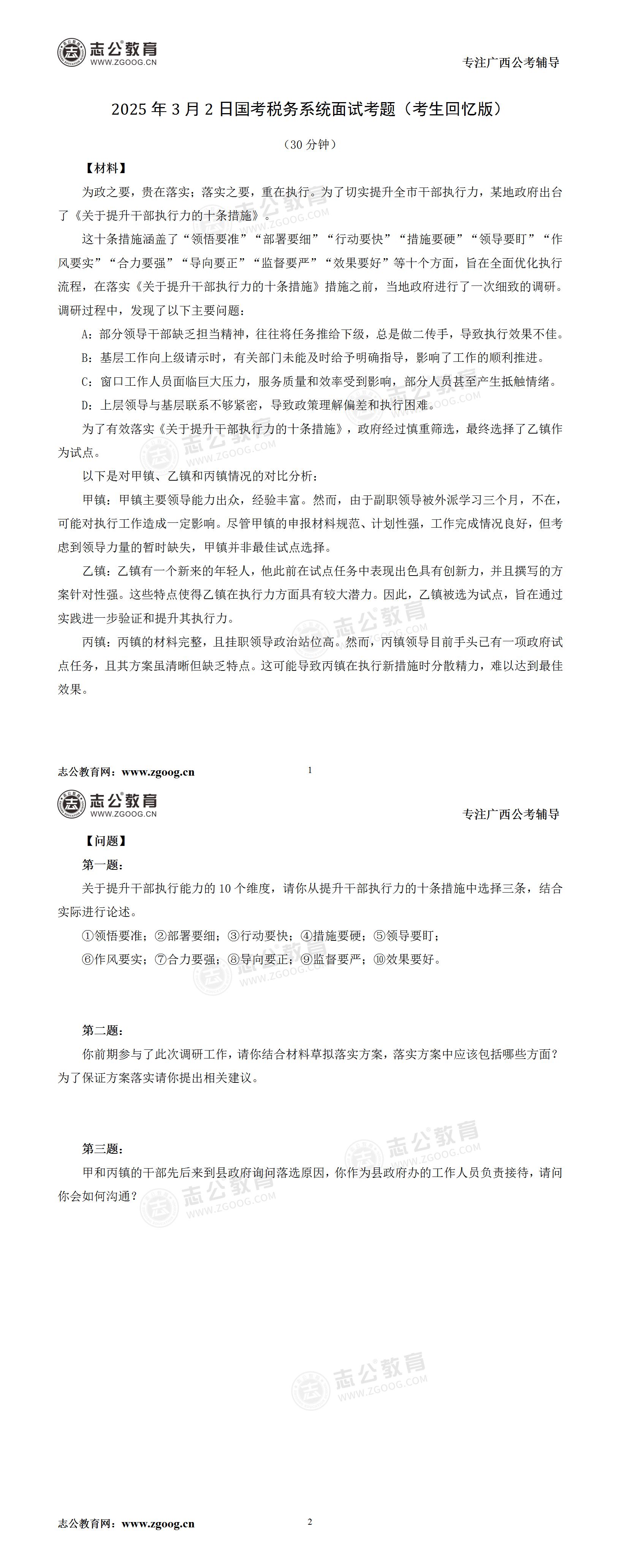 2025年國考稅務系統3月2日面試考題(考生回憶版)