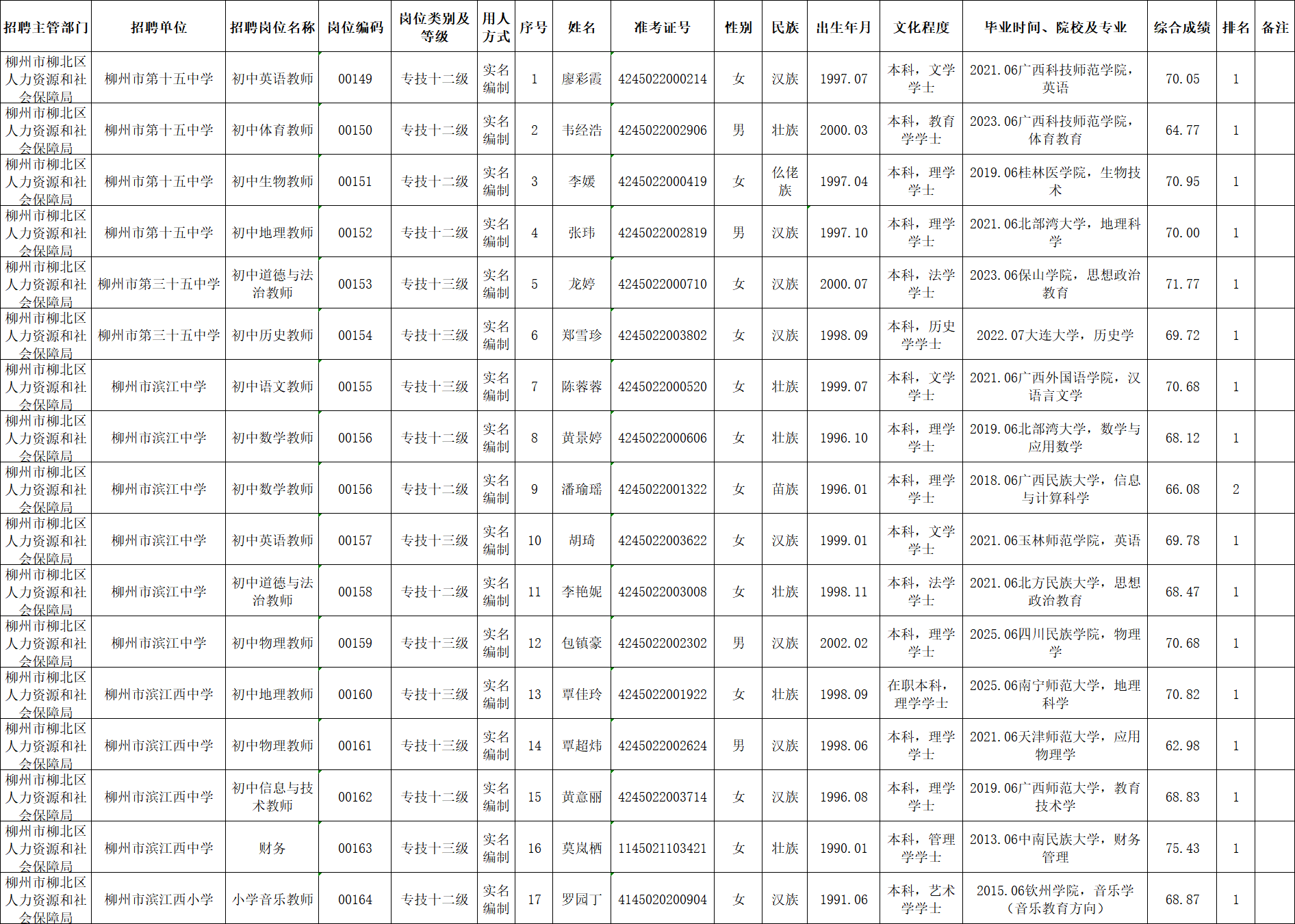 柳北區(qū)2025年度下半年事業(yè)單位公開(kāi)考試招聘工作人員擬聘用人選公示(第四批)